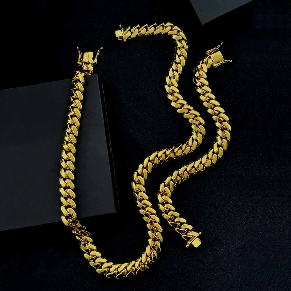 10mm 14K Gold Plating Cuban Chain Iced Out Necklace Cool Hiphop Brass Cuban Link Chain