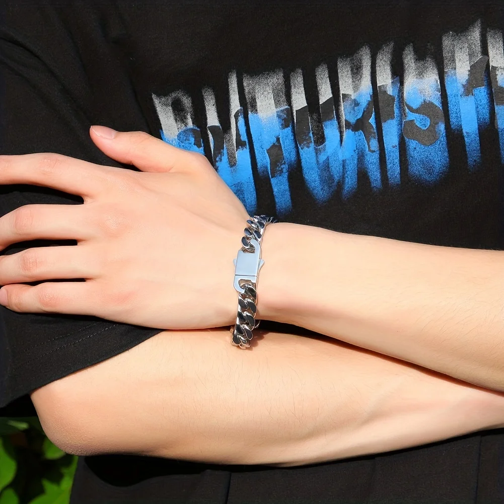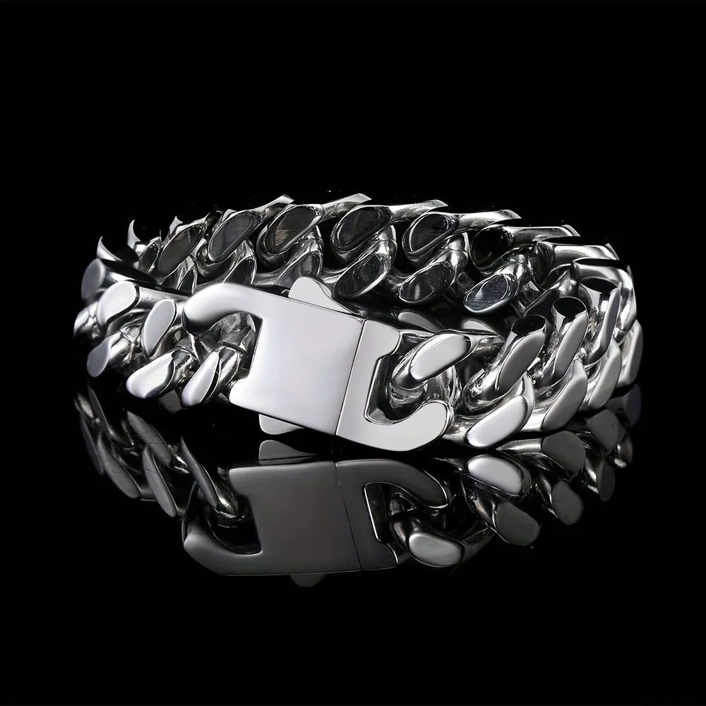 316 Stainless Steel Plated 18k Gold Fashion Crypto Cuban Chain Miami Rap Hip Hop Men's Bracelet Accessory