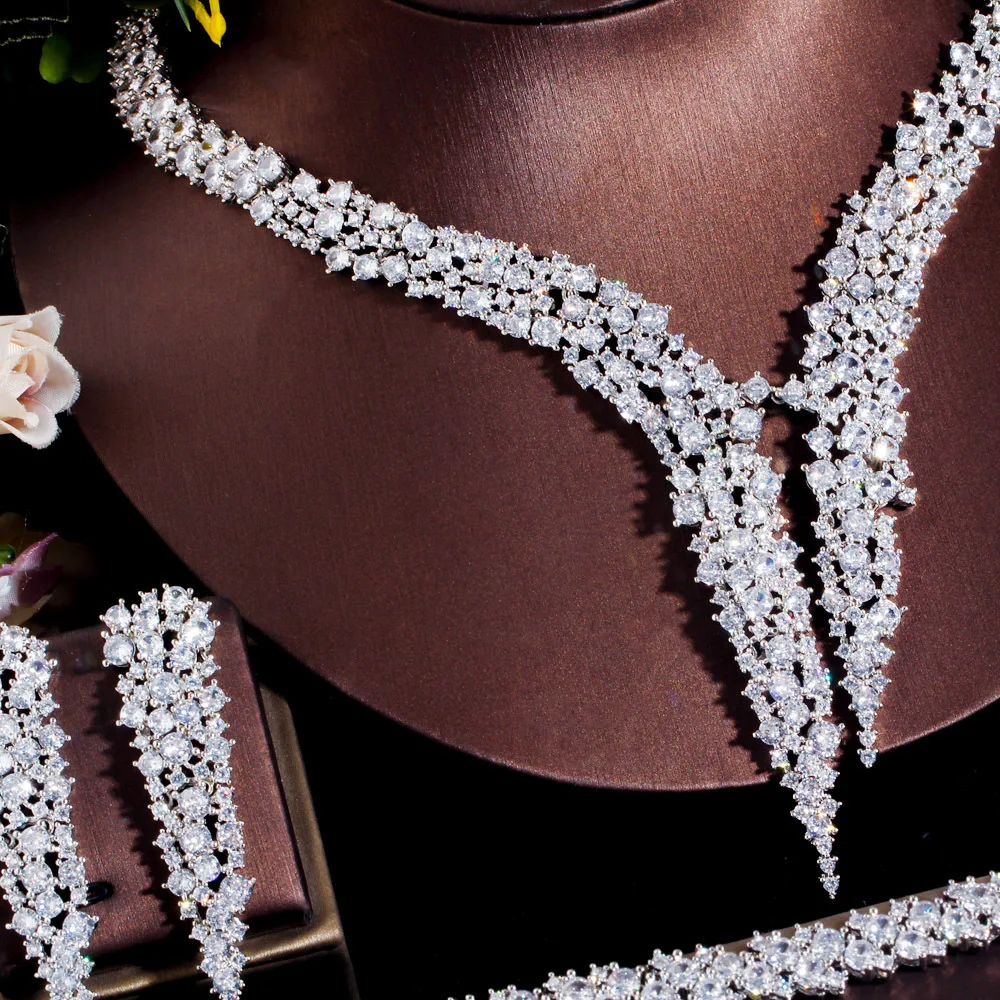 Handmade Lady Lab Diamond Jewelry Set White Gold Wedding Ring Earring Necklace Bracelet for Women Bridal Engagement Jewelry